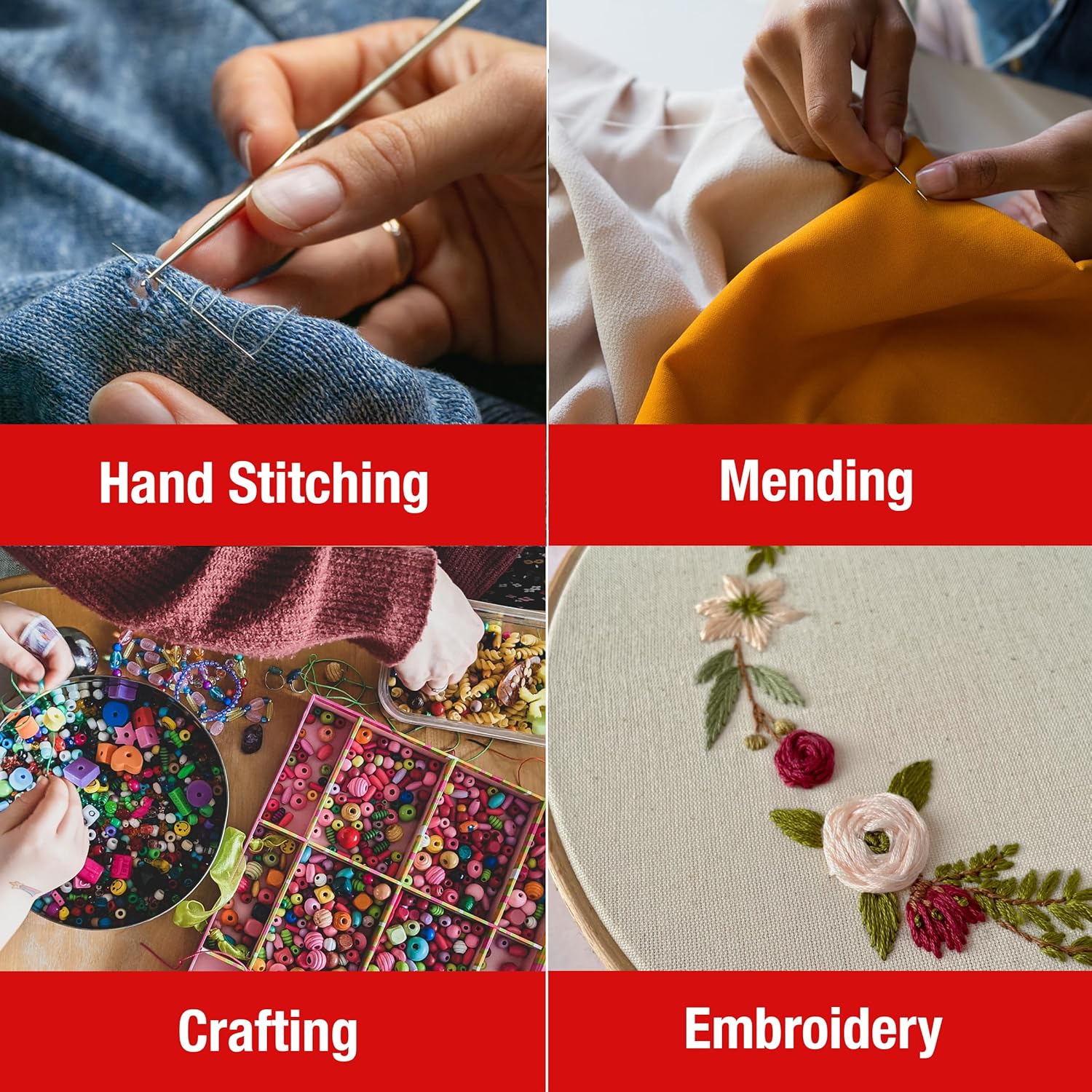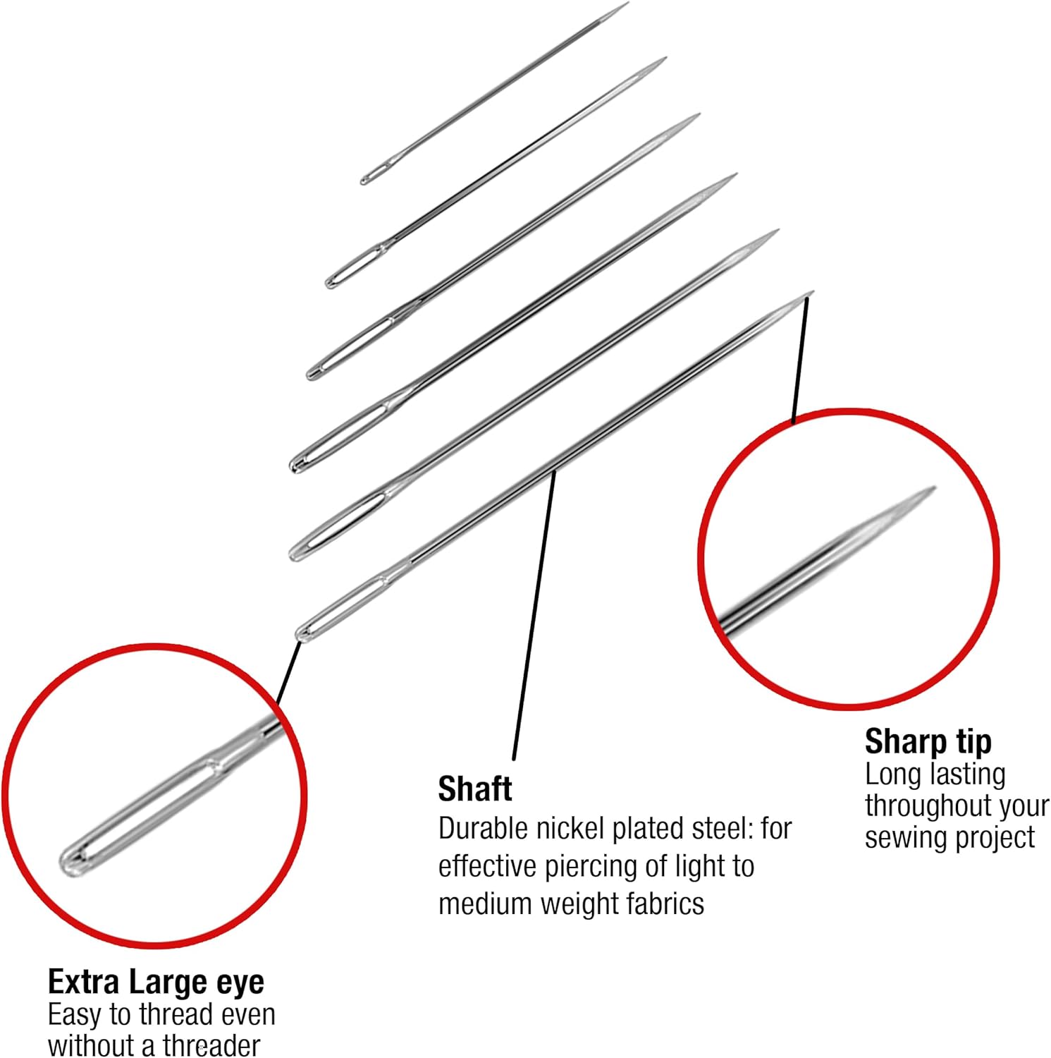 SINGER 50ct Assorted Large Eye Needles for Hand Sewing, Self-Threading Sewing Needles, 6 Sizes