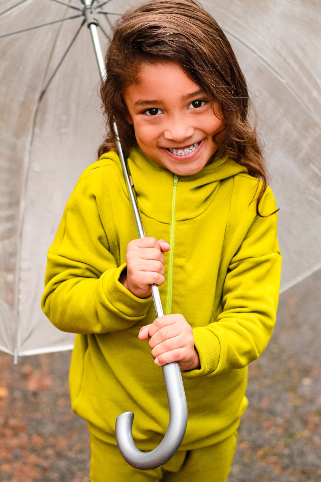 A bold, bright lime chartreuse with cozy fleece inside and a smooth performance face. Perfect for statement activewear, kids’ wear, and high-visibility outdoor pieces.