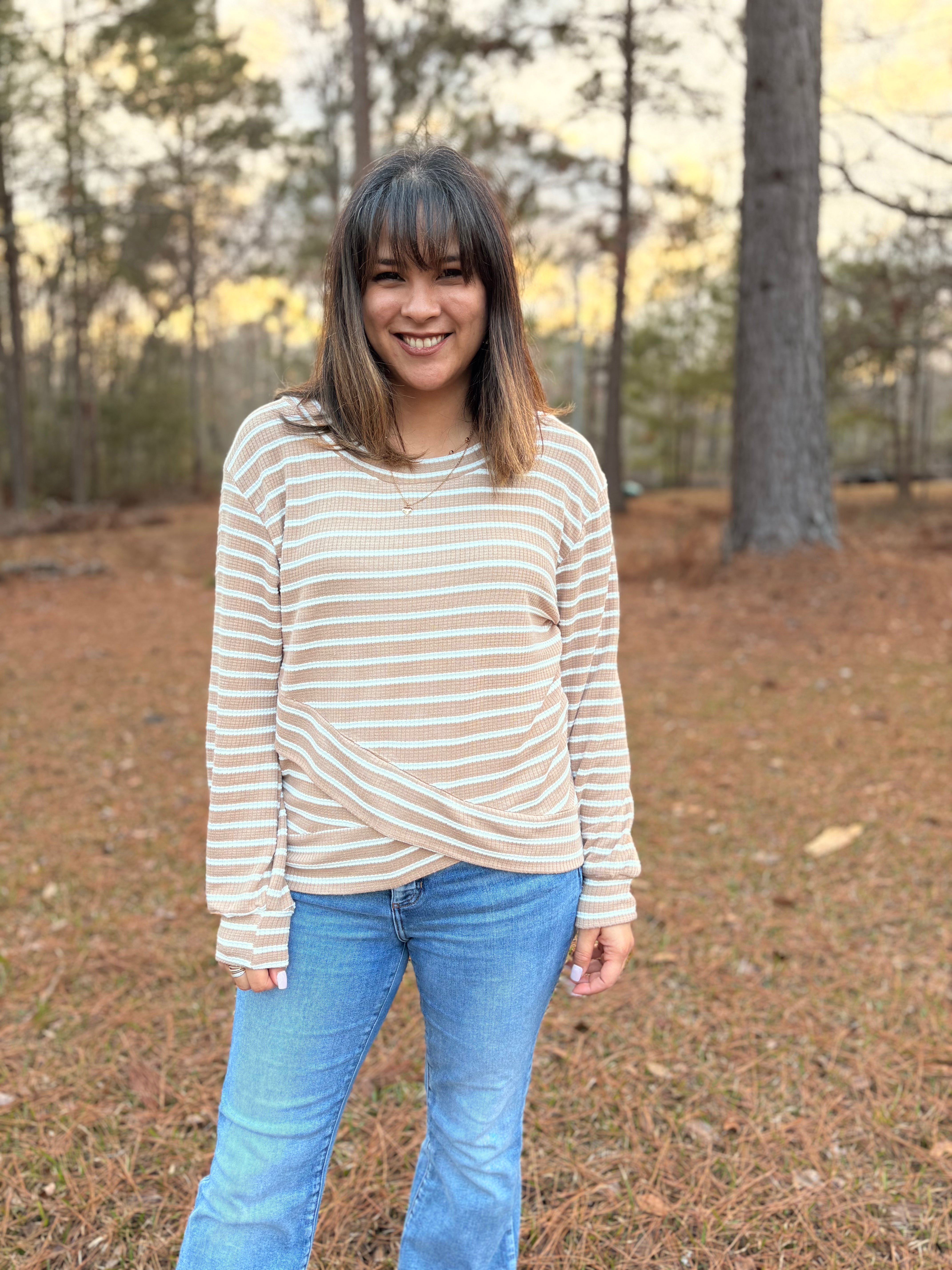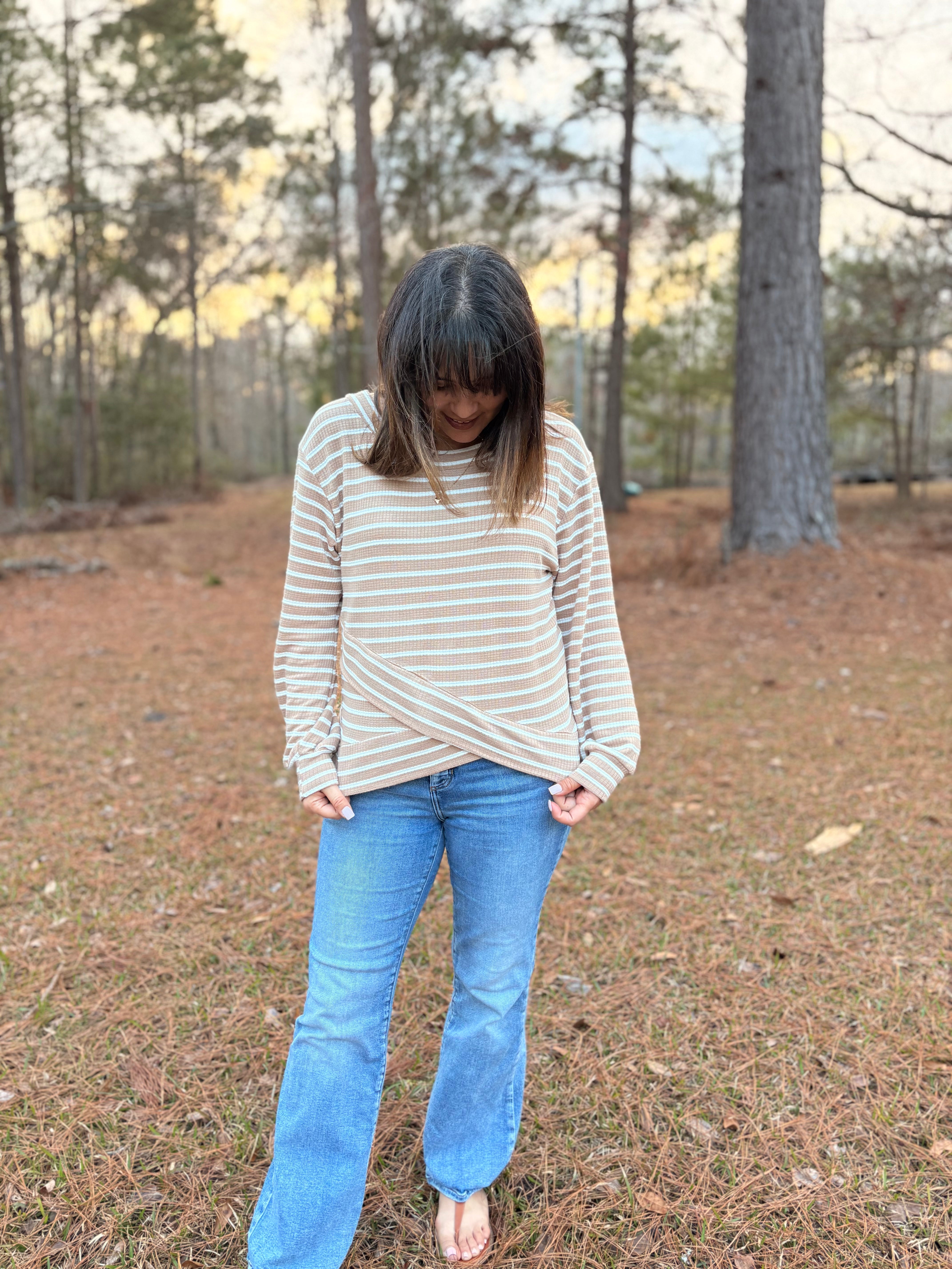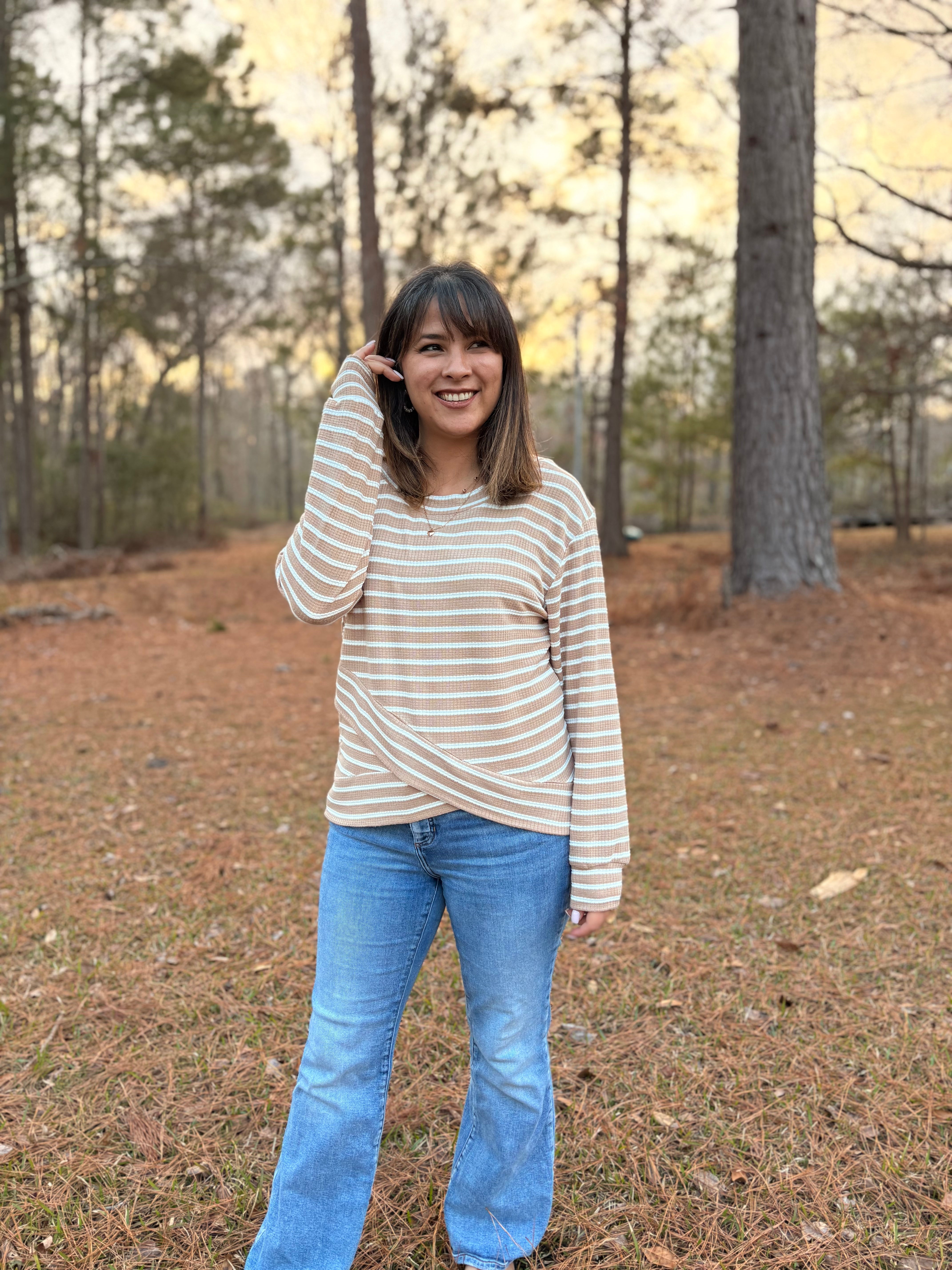 Cozy Stripe, Brushed Rib Knit in Oatmeal Ash